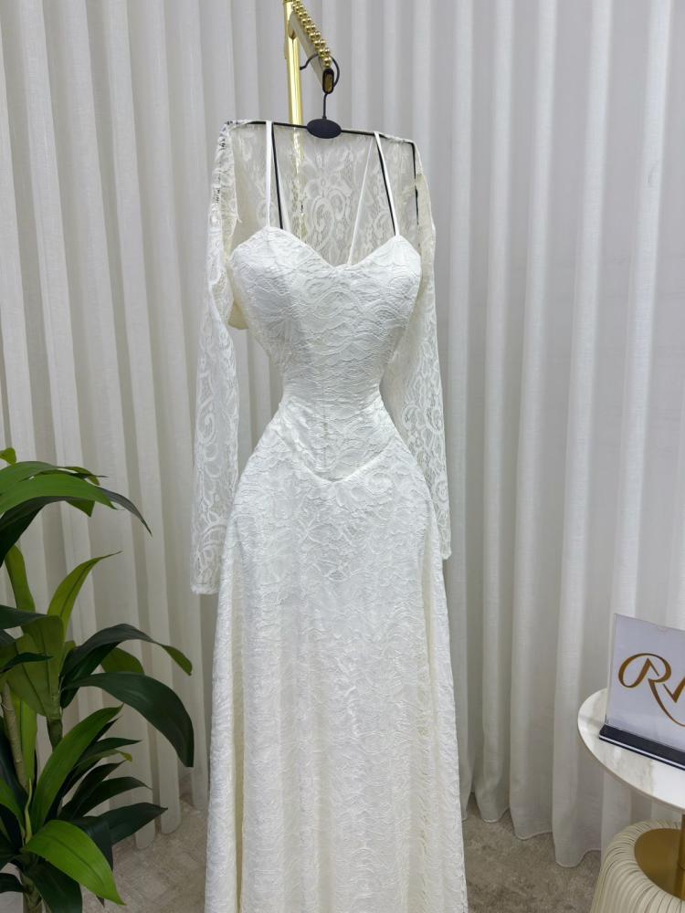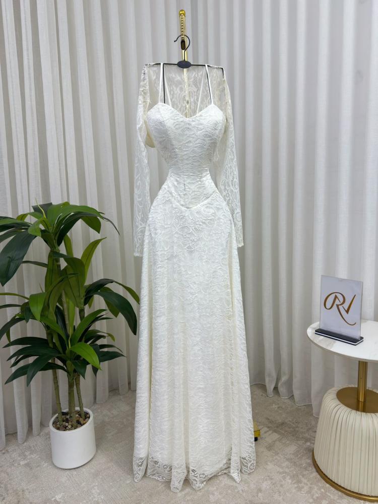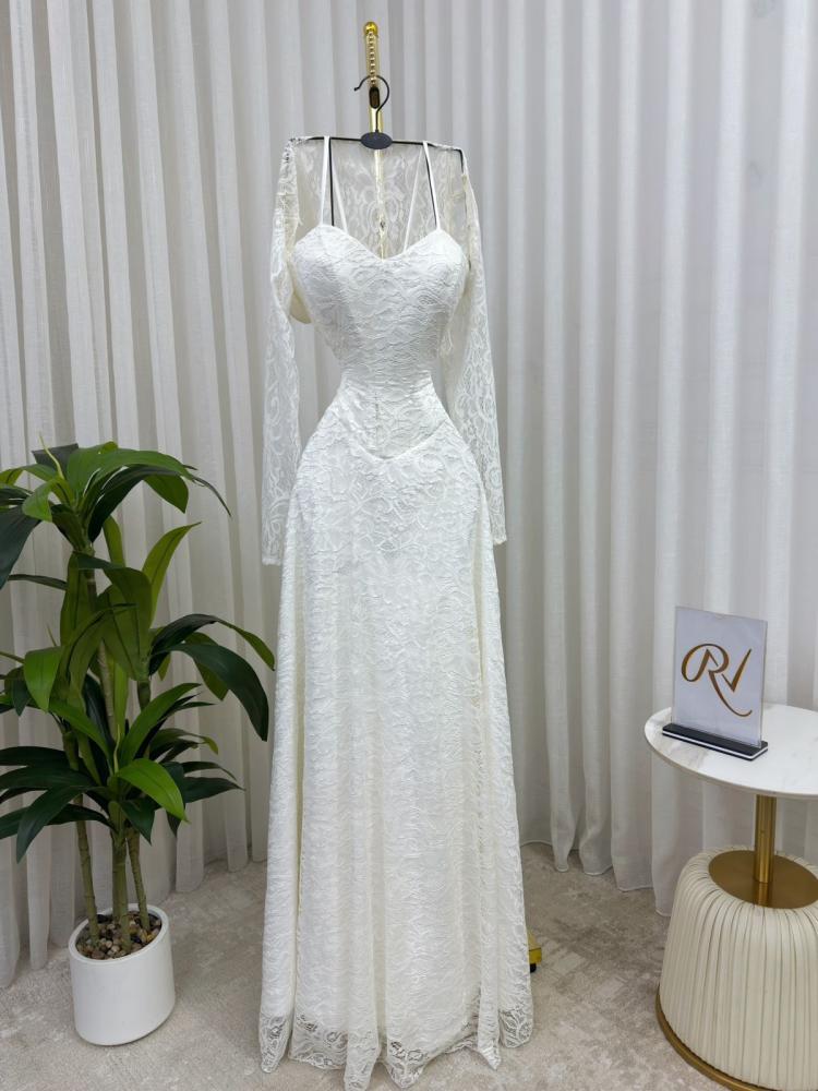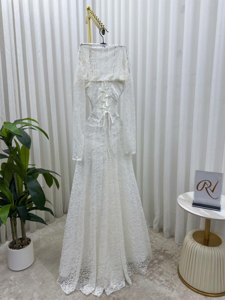 فستان دانتيل ابيض من ريفال ليدي استمتعي بإطلالة خلابة تجمع بين رقة الدانتيل وفخامة التصميم مع هذا الفستان المثالي لمناسباتك السعيدة بلمسة عصرية ناعمة.