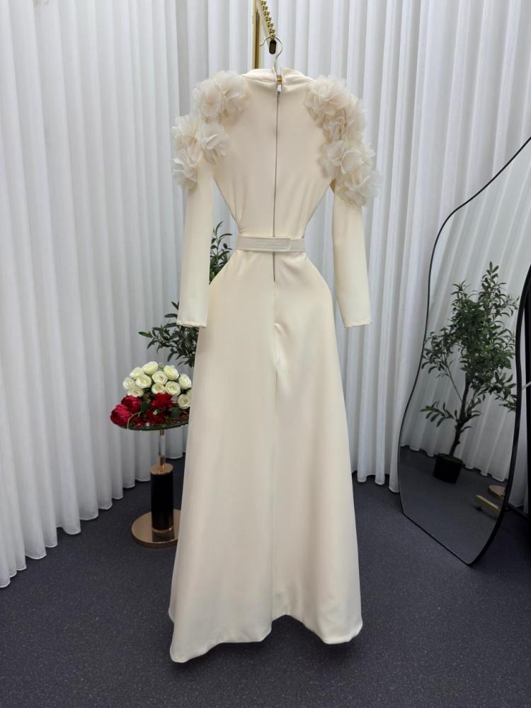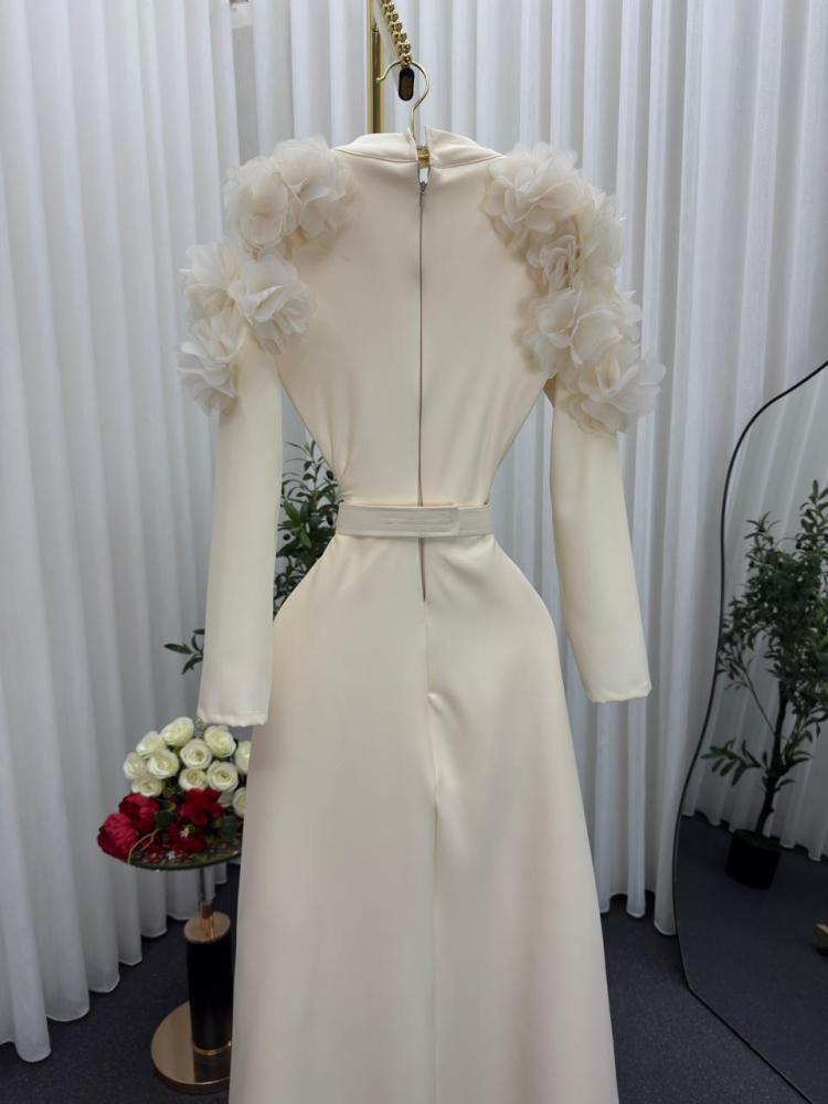 • تضفي الورود المجسمة على الأكتاف لمسة جمالية بارزة تزيد من رقي وفخامة الإطلالة النهائية.