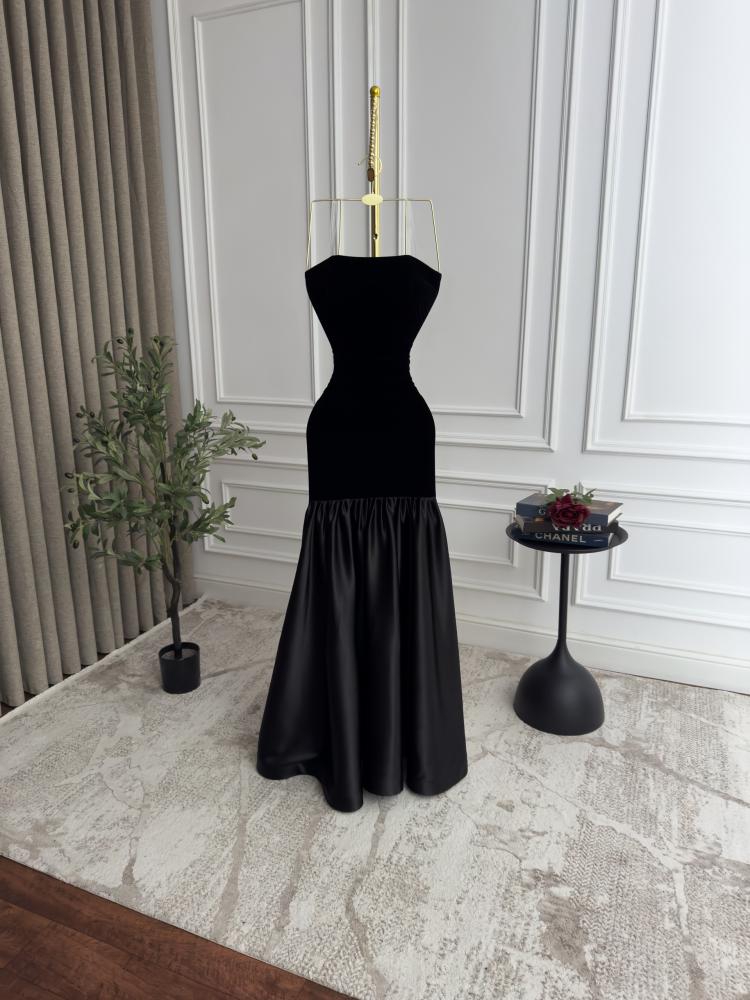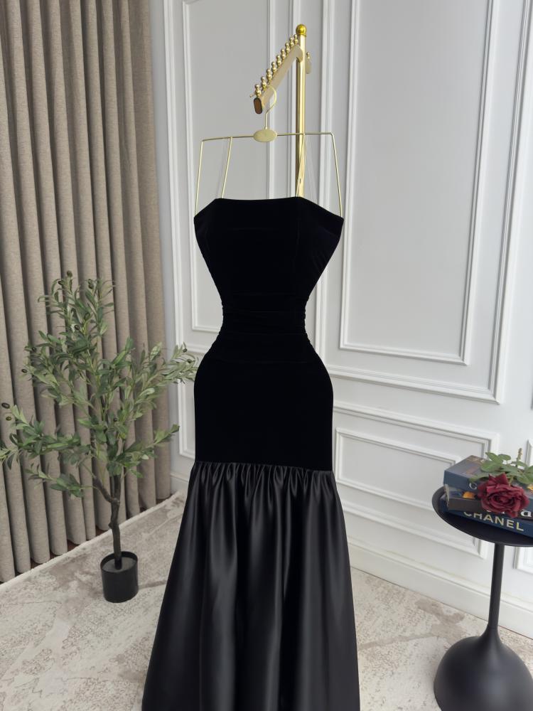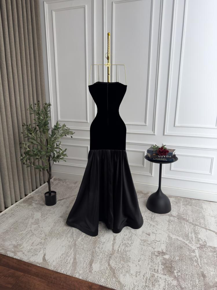 • التصميم: قصة سمكة مع جزء سفلي من الستان وخصر محدد.